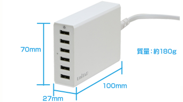| 電源出力 | DC5V/合計11A(1ポートあたり最大2.4A) |