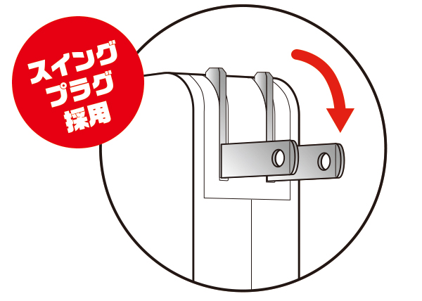 約170gと軽量コンパクトな本体に90度スイングプラグを採用、場面に合わせて直挿し可能です。
