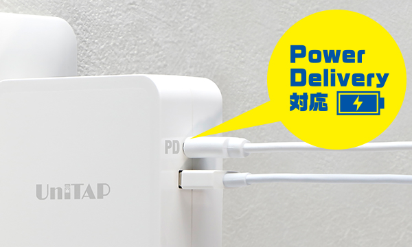 最大出力60WのUSB Type-Cポートは、 最新規格Power Delivery 3.0 に対応している製品に対して最大出力60Wでの急速充電が可能です。