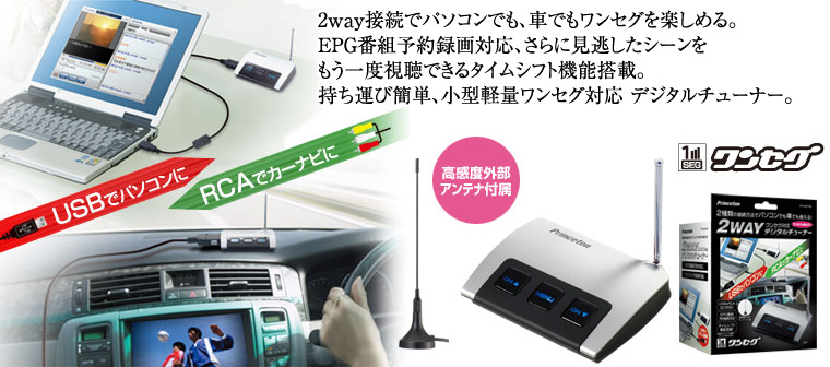 USB接続とRCA接続(コンポジット出力)の2種類の接続方法でワンセグを楽しむことができます。 |
