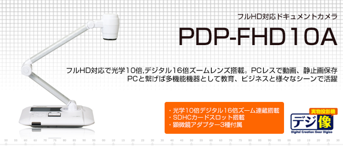 デジ像実物投影機「PDP-FHD10A」は、教育現場やプレゼンテーション時に便利なポータブルタイプのドキュメントカメラです。
