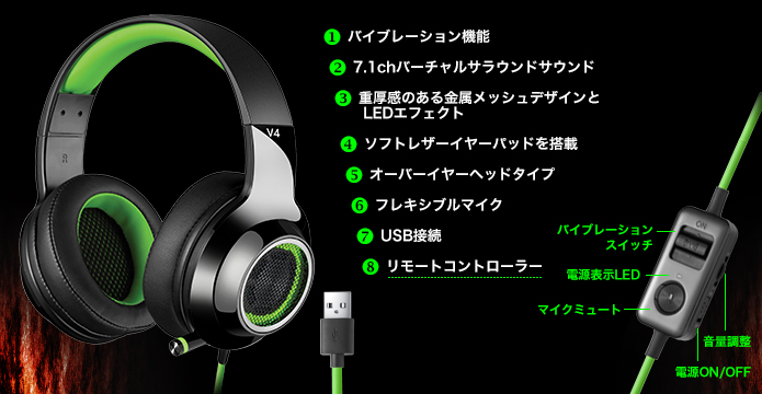 プロゲーミング用ハイスペック、ゲーミングヘッドセット「V4」