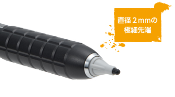 ペン先端部は直径2mmと極細形状なので、手元が見やすく、紙にペンで描くような自然な感覚です。