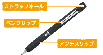 滑りにくいアンチスリップ加工、持ち運びに便利なペンクリップ、キーホルダーが付けられるストラップホールなど、各種落下防止設計で不意な落下を防ぎます。