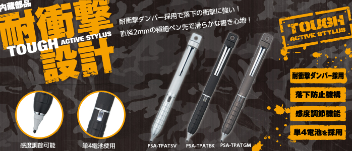 PSA-TPATは直径2mmという極細先端部を備えた、ペン本体で静電発生するアクティブスタイラスペンです。