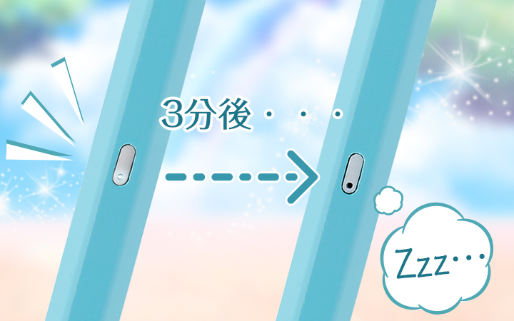 約3分以上操作をしないことで自動的に電源がOFFになるオートスリープ機能搭載。電池の消耗を抑え、電源の消し忘れにも安心です。
