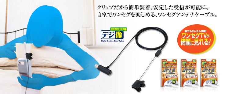 ワンセグテレビは受信感度が弱いために、室内で使用するとなかなかきれいに受信できません。 デジ像ワンセグアンテナケーブルPEA-03M/PEA-05M/PEA-10Mは、室内に設置されているテレビアンテナコンセントに接続して使用するため、ワンセグテレビでも安定した映像が受信できます。 「自分の部屋でテレビが見たい」、「寝る前の時間ベッドの中でテレビを観たい」、そんなときにとても便利なアイテムです。