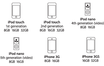 iPod touch 2nd generation/iPod touch 1st generation/iPod nano 5th generation/iPod nano 4th generation/iPhone 3GS/iPhone 3G