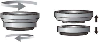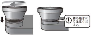 ケース正面のレンズ穴に、矢印の方向に回してレンズを取り付けます。※レンズをケースに強くねじ込み過ぎると、iPhoneまたはケースが破損する恐れがありますのでご注意ください。