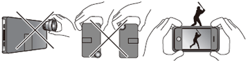 レンズやケース部を片手で持たないでください。ケースやレンズが外れてiPhoneが欠落する場合があります。 ケース左右を両手でしっかり持って撮影してください。