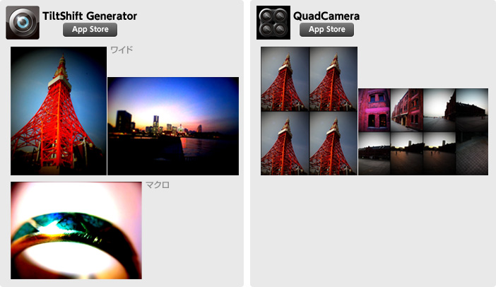 作例:『TiltShift Generator』(Art&Mobile)/『QuadCamera』(Art&Mobile)