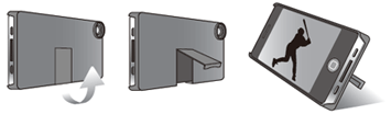 スライドショー写真や撮影した動画を視聴する際に、ケースのスタンドを使用すると便利です。※レンズを外した状態でご使用ください。