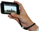 付属のハンドストラップを使用すれば、屋外や電車の中での落下や紛失を心配することなく、ムービーの視聴や、iPod touchの操作ができます。