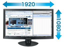 鮮やかでワイドな表示領域をビジネスに有効活用。白色LEDバックライトパネル搭載。フルHD対応23型ワイド液晶ディスプレイ。