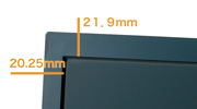 バックライトに白色LEDを採用したことにより最薄部が約18.5mmとスマートなフォルムを実現しました。ベゼル幅も、縦 約21.9mm×横 約20.25mmと、スタイリッシュなデザインです。