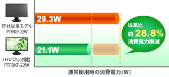 白色LEDバックパネルの採用により、従来モデル(当社)をしのぐ低消費電力を実現。