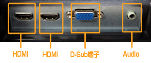 | 入力信号コネクタ | VGA(D-SUBミニ15ピン)、HDMI×2、ステレオミニジャック | |
