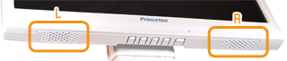 オーディオの入力端子を装備し、ディスプレイ背面上部に、スピーカー(1W x 2)を内蔵しています。