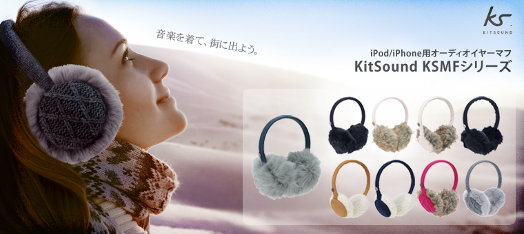 英国発の音楽ブランドKitSoundからiPod/iPhone用オーディオイヤーマフ、KSMFシリーズの新作が今年も新登場! 秋冬ファッションのアクセントとして防寒にも使える定番アイテムのイヤーマフにヘッドホン機能を搭載しました。 KSMFシリーズは、マイク付きリモコン付属なので、着信時にはイヤーマフを付けたまま通話可能!突然の着信にもかじかむ手でiPhoneを持つ必要はありません。 寒い季節も自分らしいおしゃれと音楽でHappyに! おしゃれと音楽を愛する女の子の為のオーディオイヤーマフです。