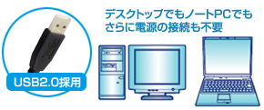 USB2.0採用でデスクトップでも、ノートパソコンでも使用可能