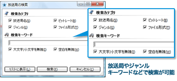 初めて使用する場合には、インターネットに接続された状態であれば自動的に放送局一覧が表示されます。放送局の局名やジャンルどで放送局の検索も可能です。さらに、アーティスト名やタイトルでも放送局の絞り込みができる「フィルタ機能」を使えば、お気に入りの曲だけ自動で録音も可能です。