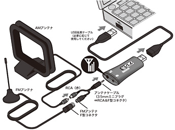 | 同梱品 | デジ造Radio版本体×1、AMアンテナ[2m]×1、FMアンテナ[2m]×1、アンテナケーブル(3.5mmミニプラグ⇔RCA/F型)×1、ステレオ入力ケーブル(3.5mmミニプラグ⇔RCA)×1、USB延長ケーブル(20cm)×1、CD-ROM×1、設定ガイド/保証書×1、活用ガイド×1 | |