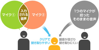 騒がしい場所で使用しても相手にしっかりと声が伝わる