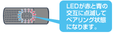 本体背面のLEDが赤と青に点滅するのを確認して、携帯電話からハンズフリー登録を実施してください。