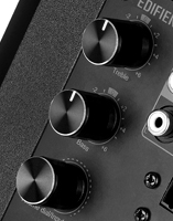 好みに合わせたサウンド設計のためにスピーカー背面に低音・高音・音量調節ダイヤルを搭載。好みや再生音源に合わせて音質や音量を簡単に的確に操作が可能です。