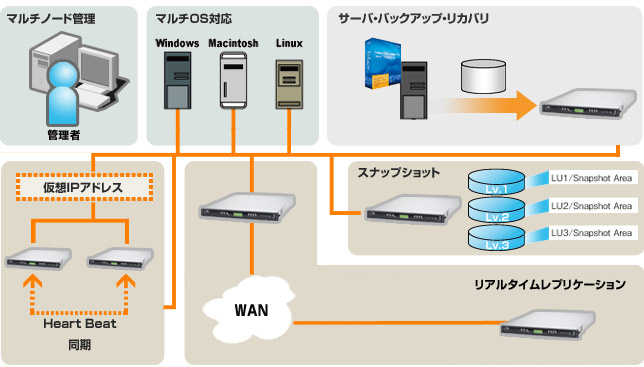 レプリケーション機能は、2台のproNAS同士でリアルタイムのデータのレプリケーション(同期)を行います。