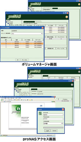 LinuxOSをベースとした独自の使いやすいユーザーインターフェースが快適でスムーズな作業を実現し、設定も容易におこなえます。 また同一のネットワークセグメントにある「proNASシリーズ」のNAS も一つの操作画面から管理することが可能です。 (日本語対応GUI搭載)